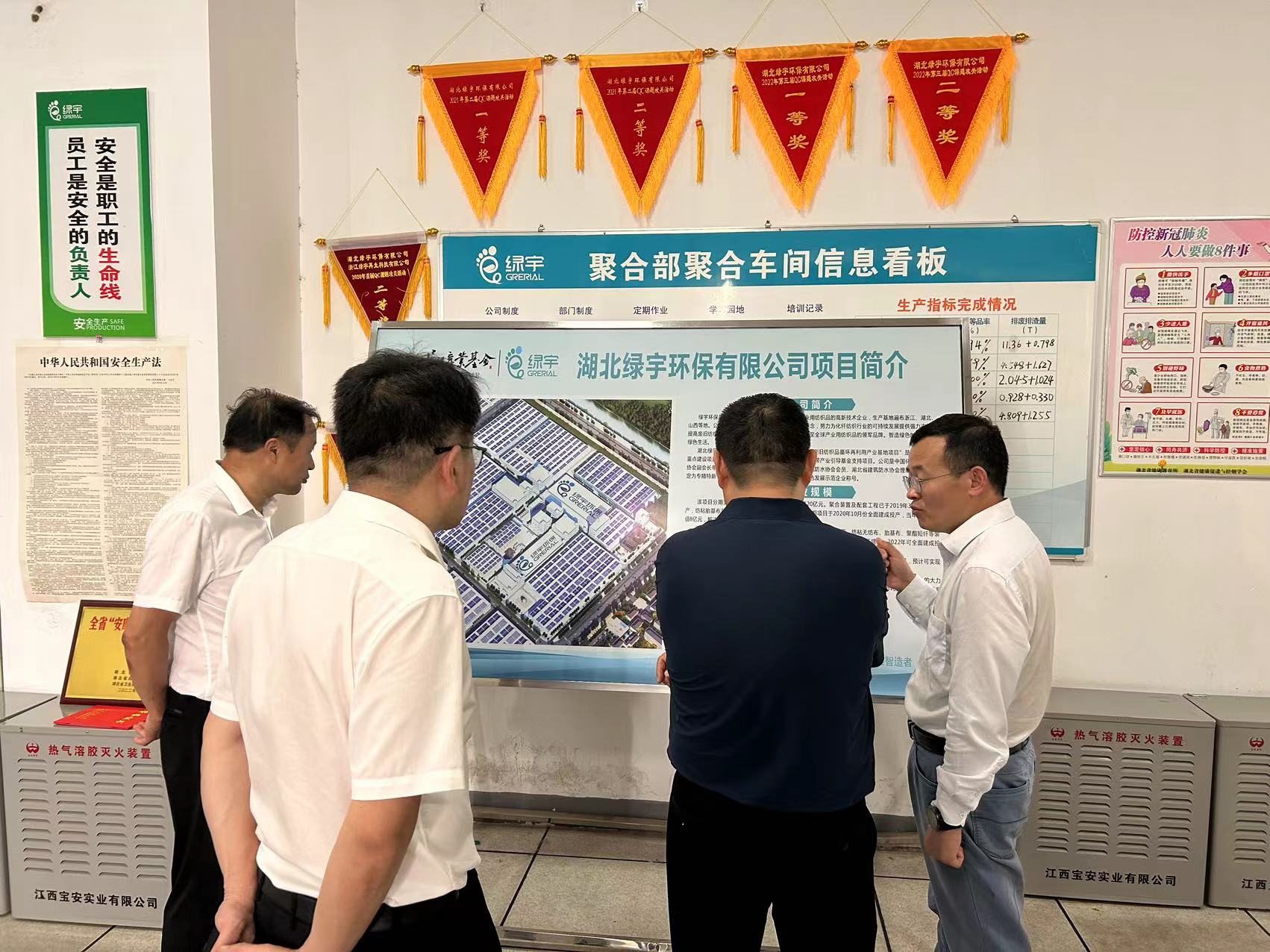 6月30日,中紡企業管理協會副會長謝青,省經信廳副處長鄧龍,華紡供應鏈副總喬羽、業務總監龔春龍一行到湖北綠宇環保有限公司開展紡織產業專題調研活動。黃岡市經信局副局長李興芳等陪同。