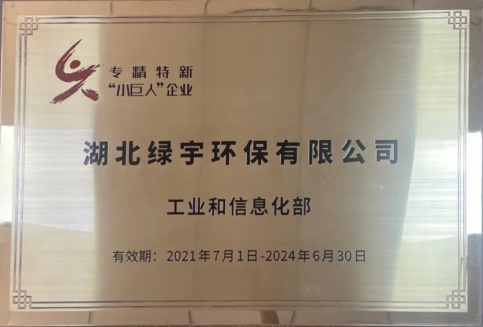 湖北綠宇環(huán)保有限公司成功評(píng)選為2021年國家級(jí)專精特新“小巨人”企業(yè)