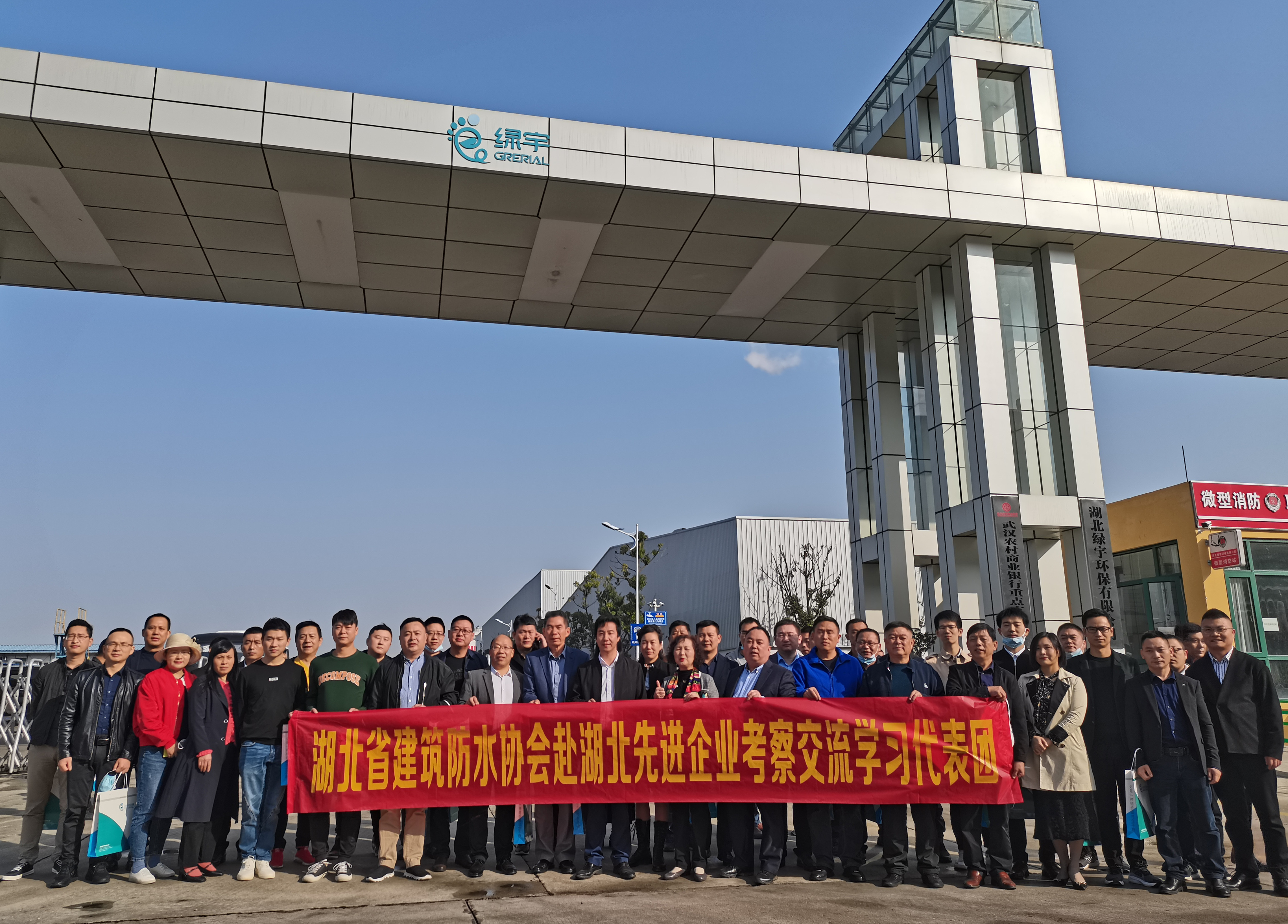 2020年11月8日-9日,湖北省建筑防水協會執行會長桂春芳率領的湖北防水企業團隊一行共有33個企業60余名代表來到綠宇環保參觀交流。綠宇環保執行董事姜傳忠、總經理溫國奇等領導熱情接待并予以全程陪同。
